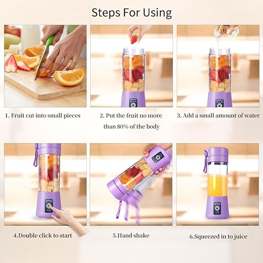 Portable Blender Cup, Electric USB Juicer Blender, Mini For Shakes and Smoothies, Juice,380ml, Six Blades Great Mixing,Light purple