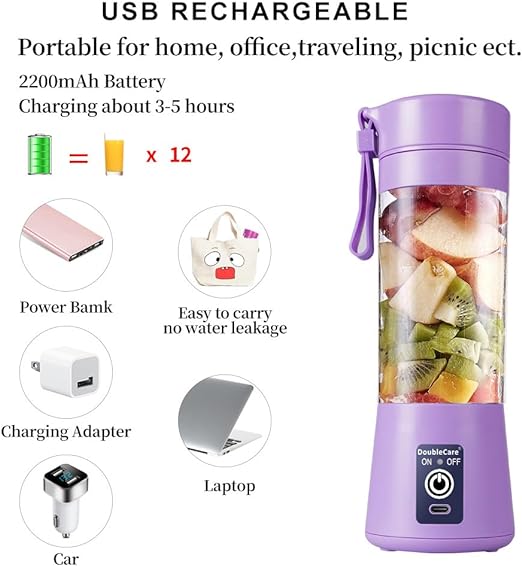 - 【Smart Safety Protection System】–The DoubleCare portable blender has built-in safety features and a magnetic sensing switch that is ultra-safe to use and clean, the juicer cup will stop working when the body and bottom are separated, Preventing injuries and use more safely!